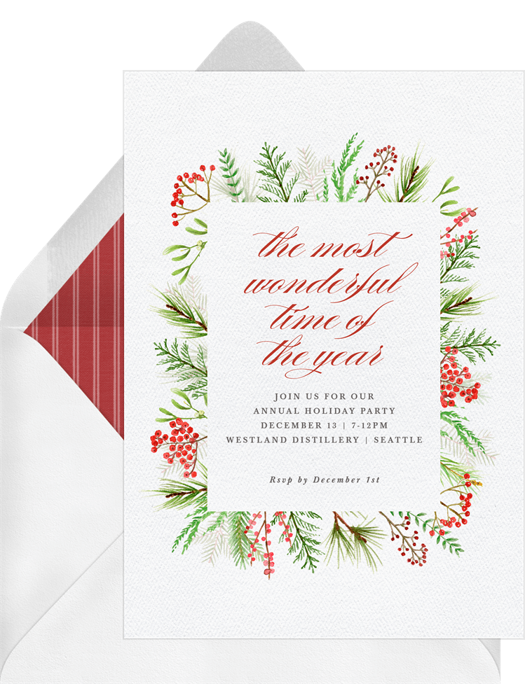 invitations winter greenery frame green holiday party Designs
