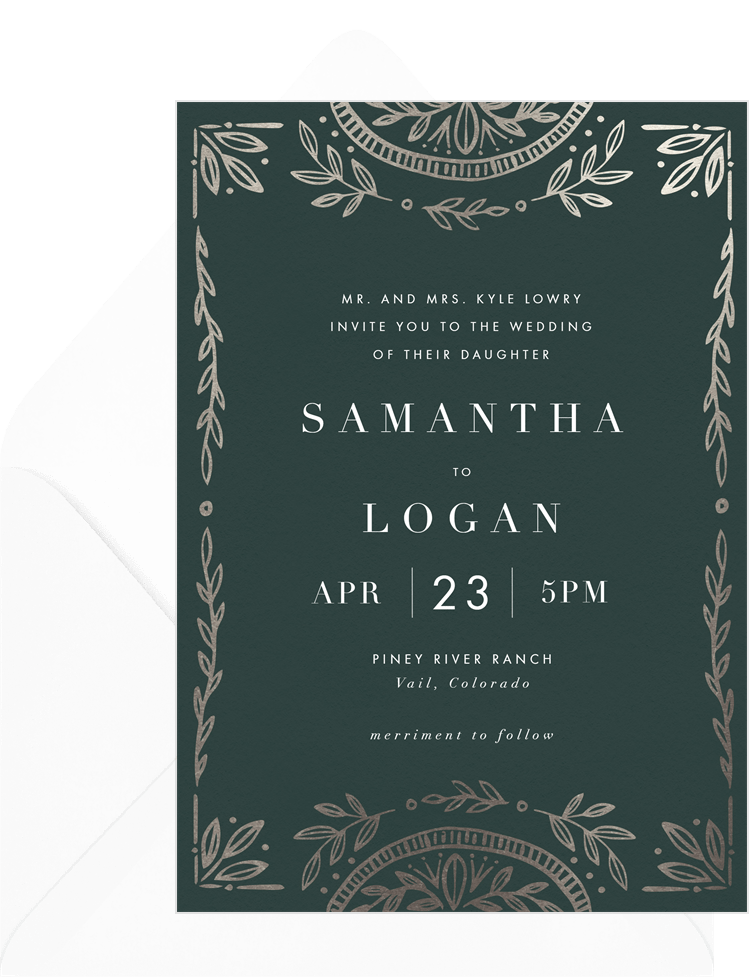 invitations woodcut border green wedding Designs