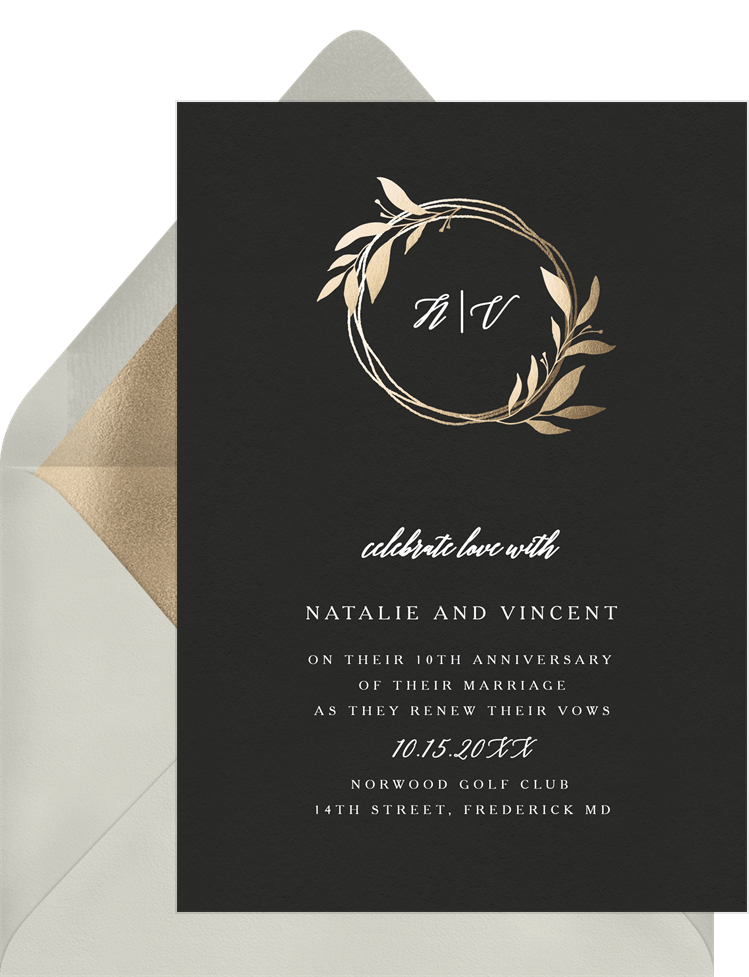 invitations wreath monogram black vow renewal Designs