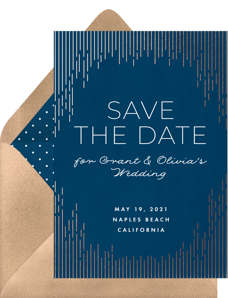 save the dates cascading foil blue wedding Designs