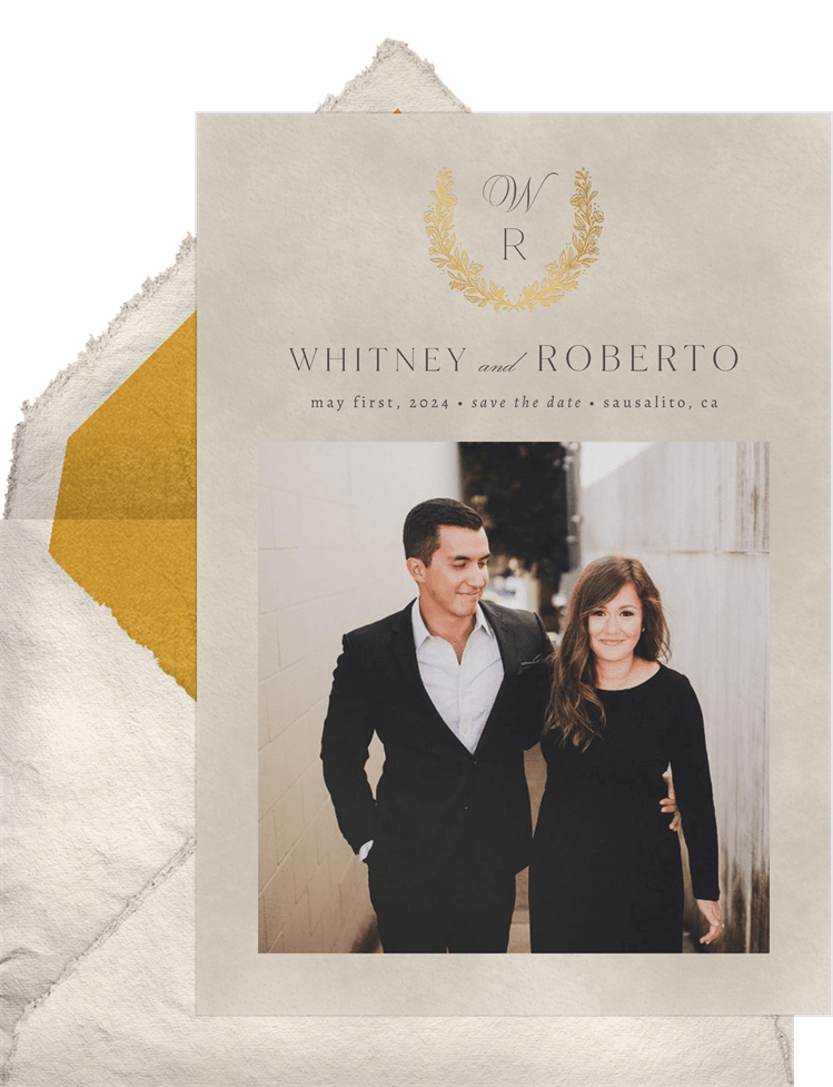 save the dates classic gilded monogram green rehearsal dinner Designs