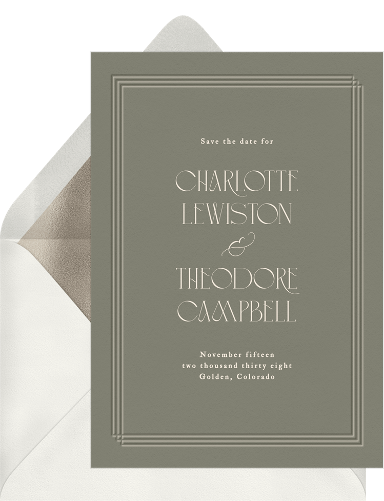 save the dates classic letterpress frame green wedding Designs