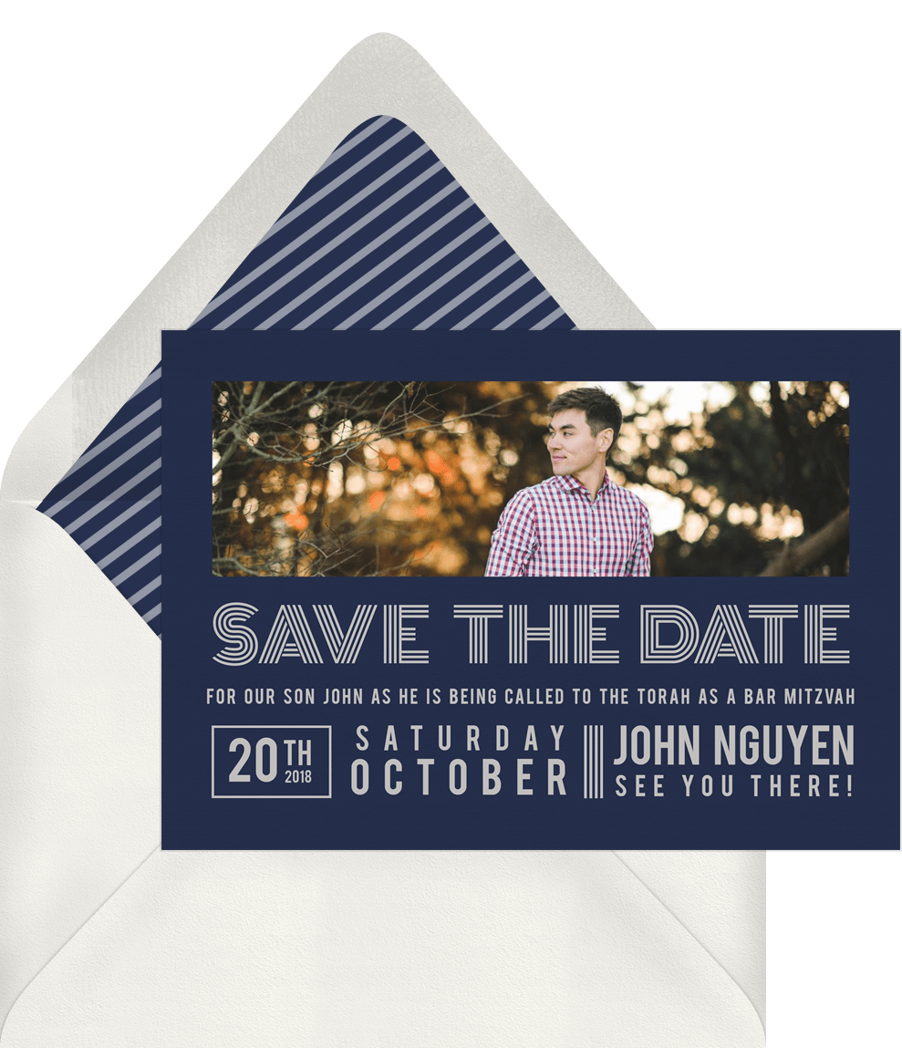 save the dates cool bar mitzvah blue bar mitzvah Designs