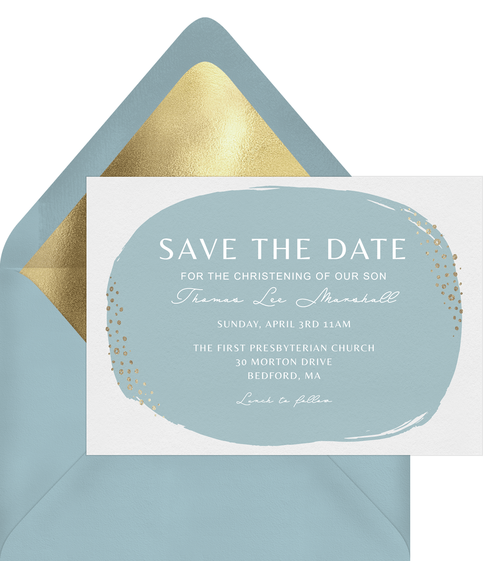 save the dates dainty foil dots blue baptism Designs