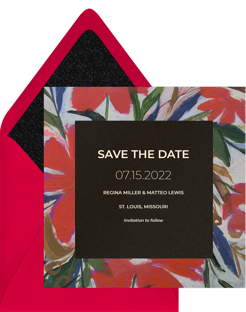 save the dates dark blooms red wedding Designs