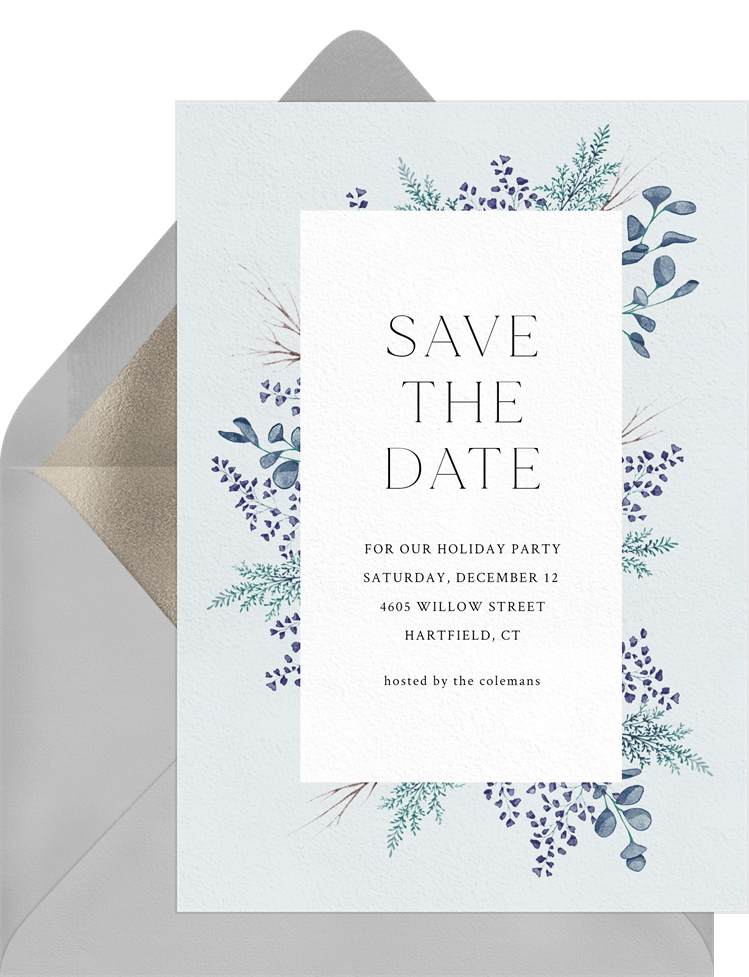 save the dates delicate foliage red holiday party Designs