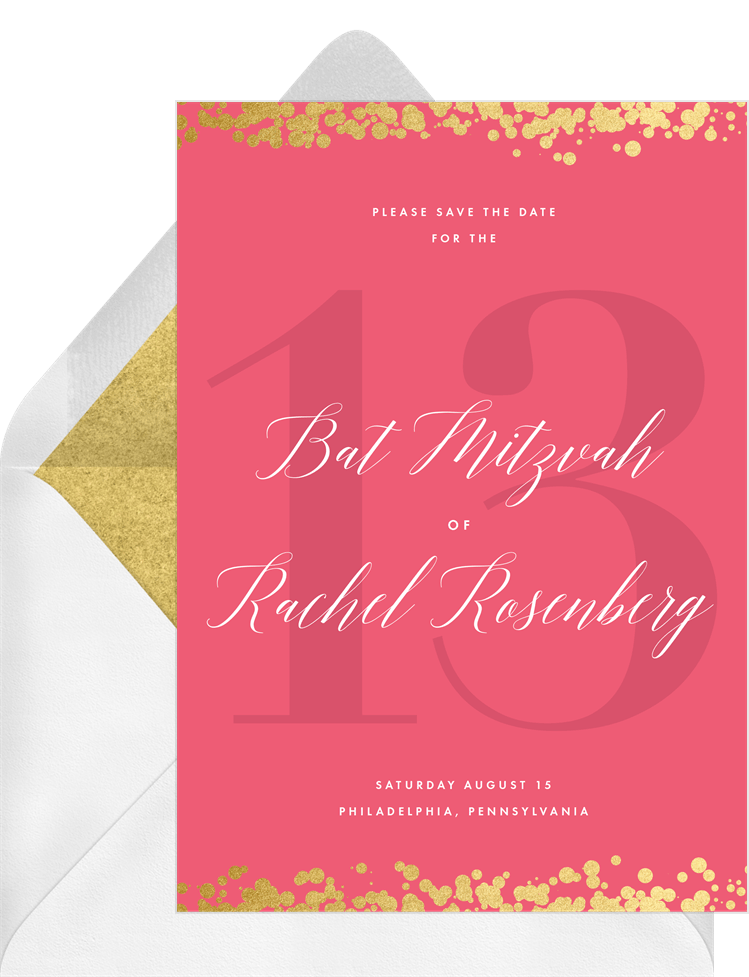 save the dates effervescent mitzvah purple bat mitzvah Designs