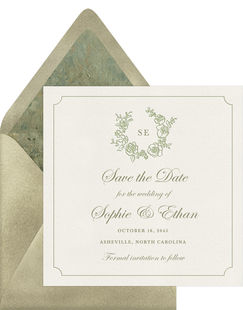 save the dates elegant wildflower wreath green wedding Designs