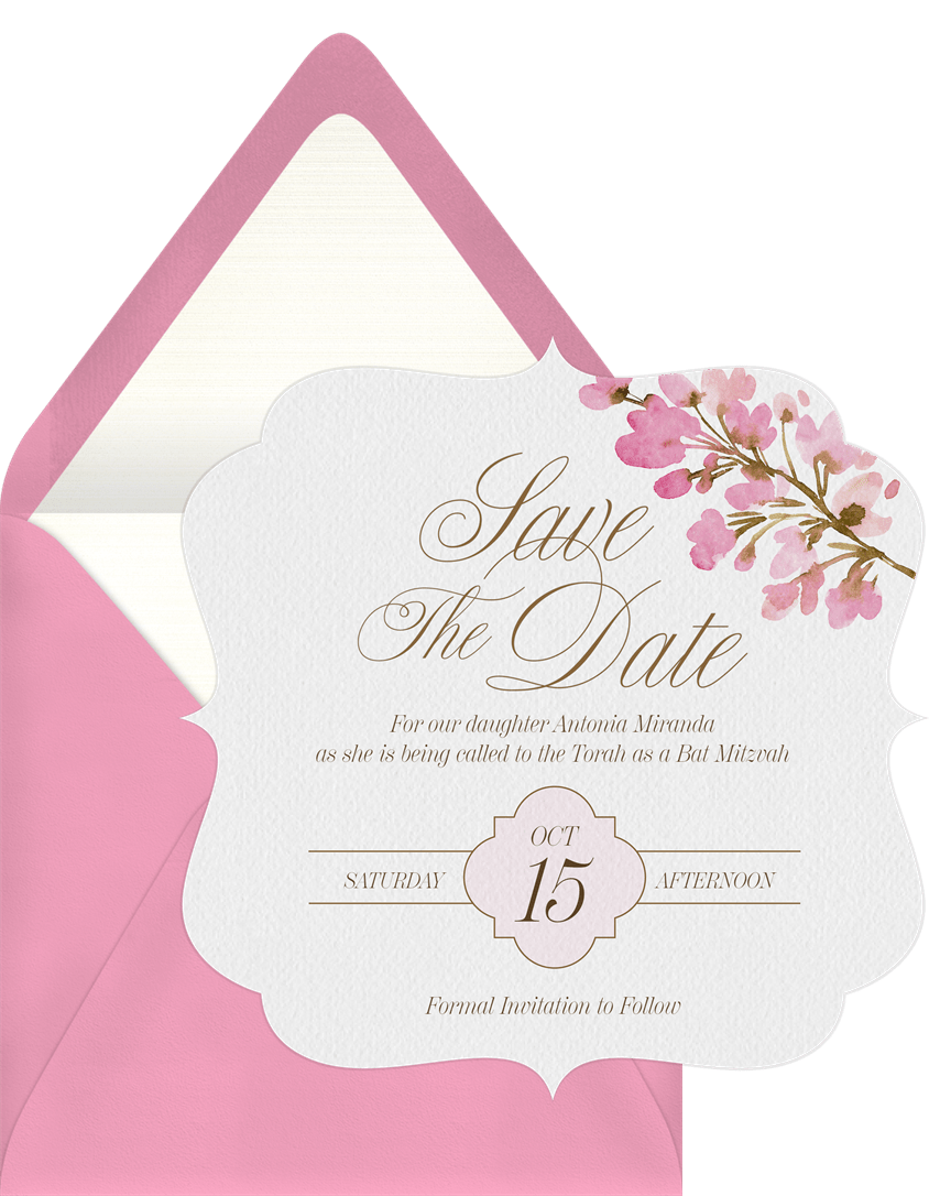 save the dates floral bat mitzvah Designs