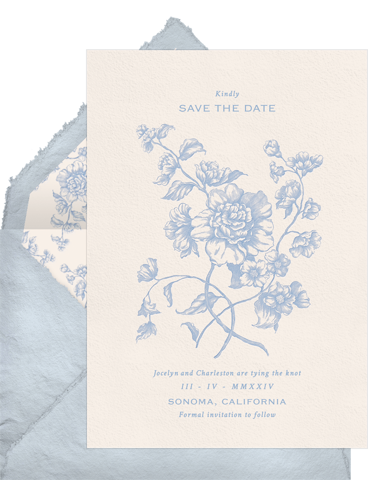 save the dates floral reverie blue wedding Designs