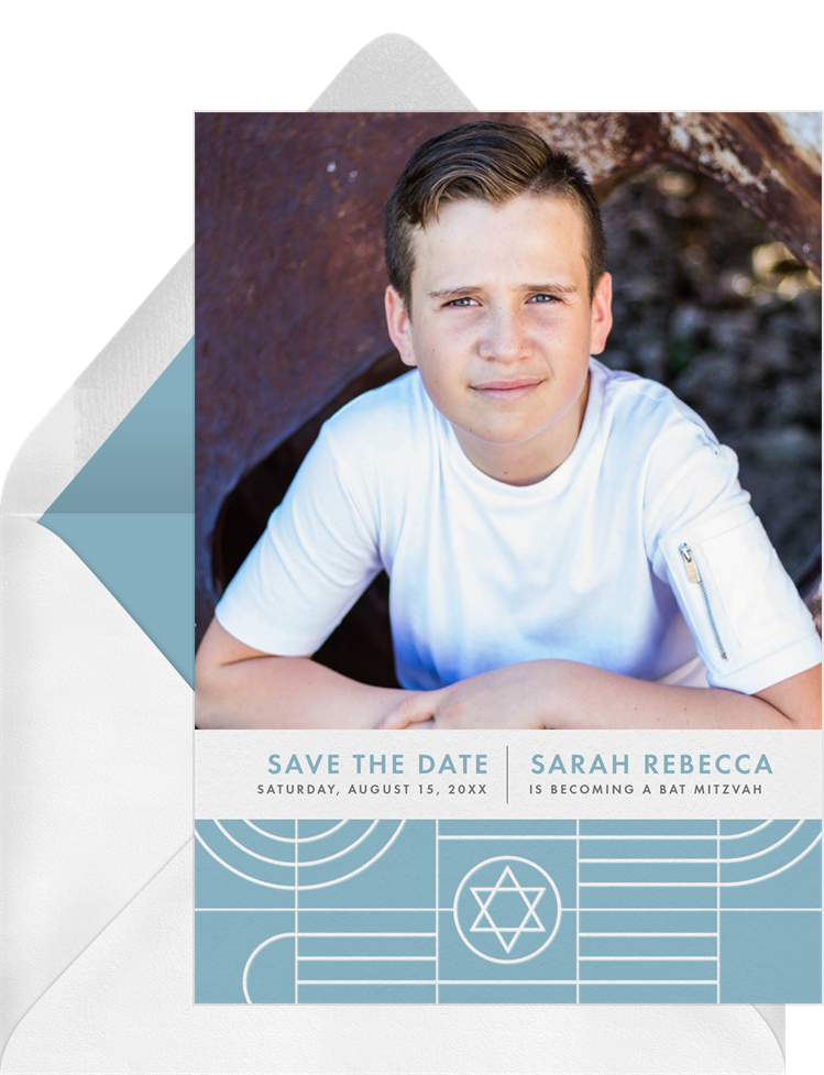 save the dates geo grid mitzvah purple bat mitzvah Designs