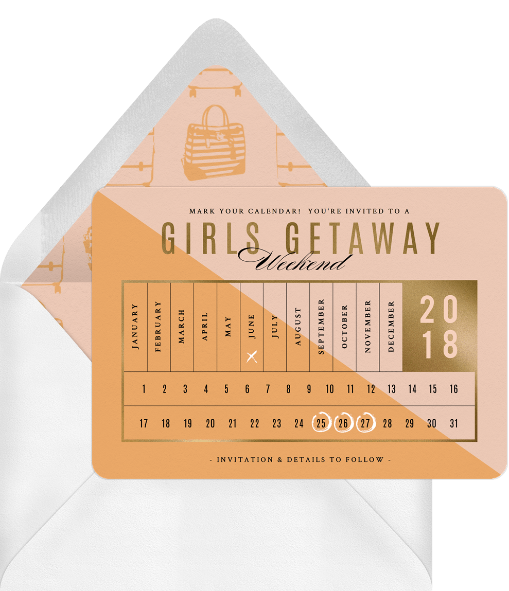 save the dates girls getaway orange entertaining Designs