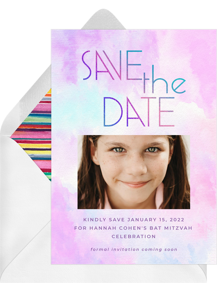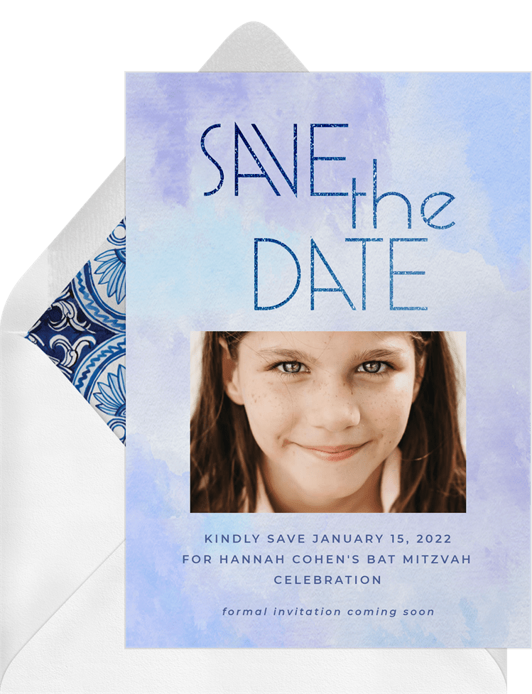save the dates glitter bat mitzvah orange bat mitzvah Designs