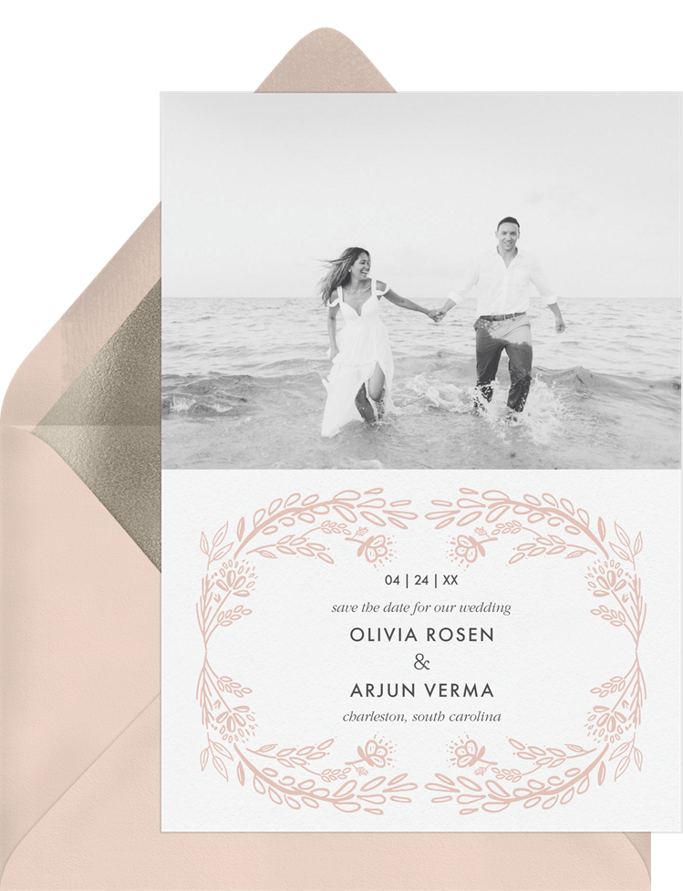 save the dates hand-drawn branches pink wedding Designs