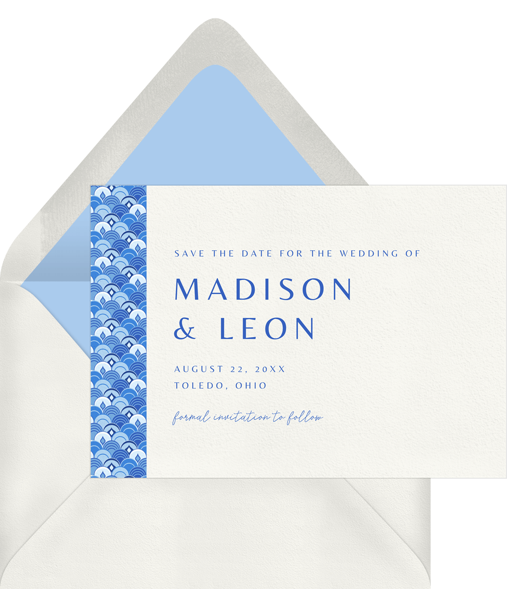 save the dates intricate art deco blue wedding Designs
