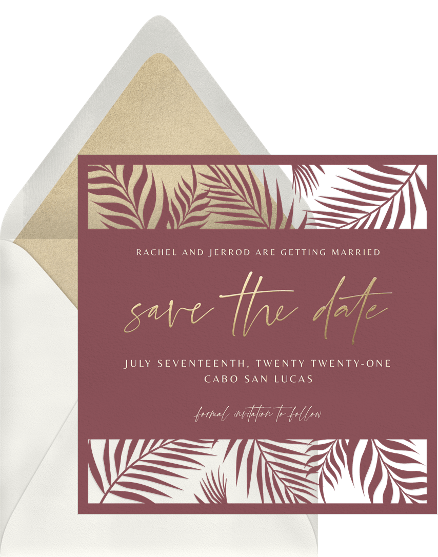 Laser-Cut Palms Save the Date