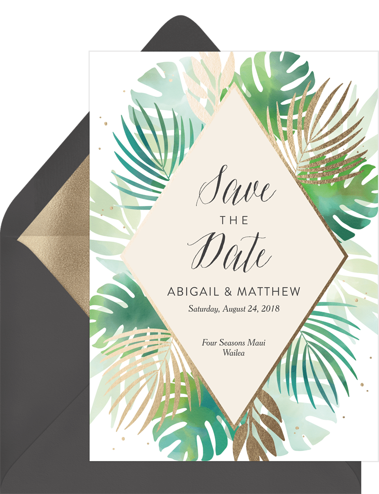 save the dates lush tropical foliage Designs