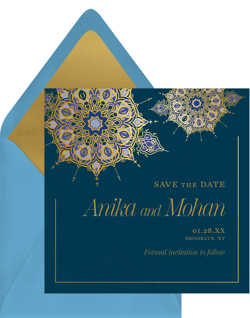 save the dates magnificent medallion blue wedding Designs