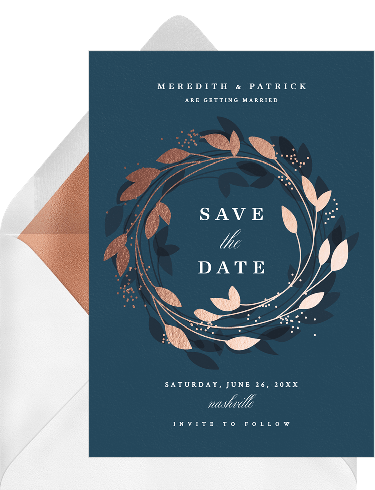 save the dates magnolia wreath blue wedding Designs