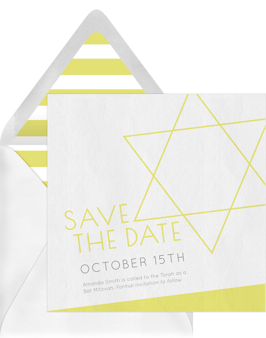 save the dates modern bat mitzvah gold bat mitzvah Designs
