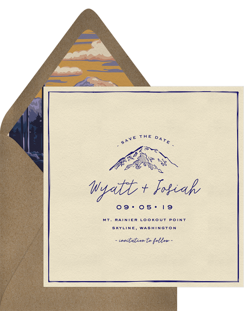 save the dates mount rainier purple wedding Designs
