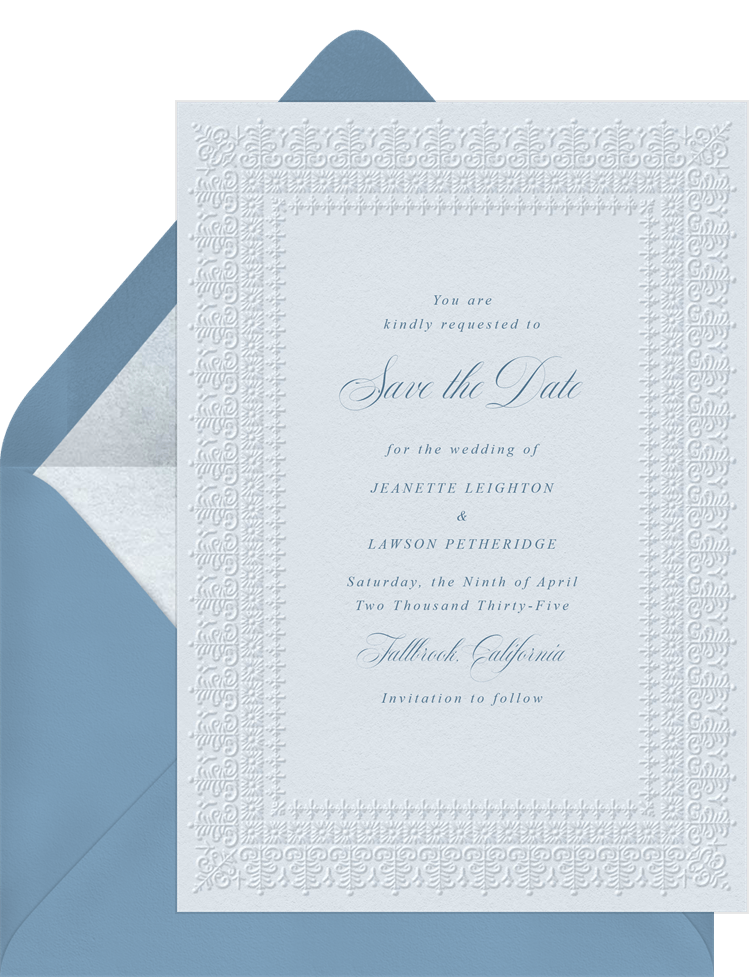 save the dates ornamental letterpress blue wedding Designs