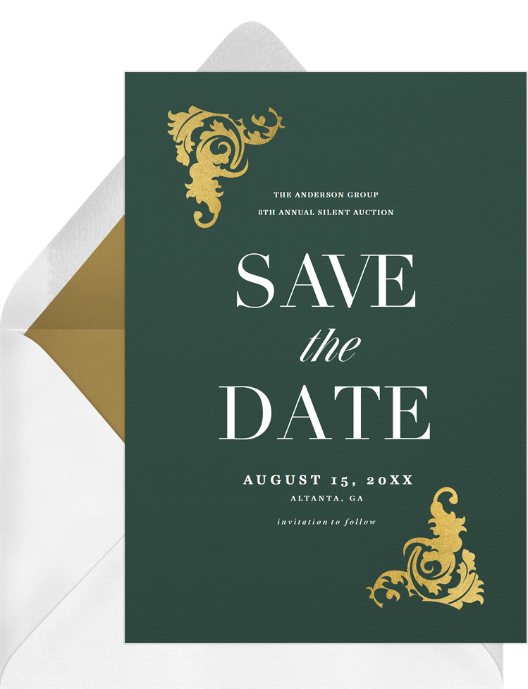 save the dates ornate gold corners green business Designs