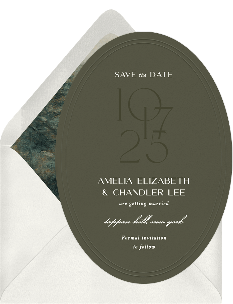save the dates oval modern stack green wedding Designs