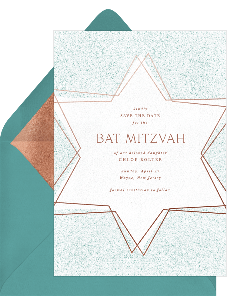 save the dates painterly star purple bat mitzvah Designs