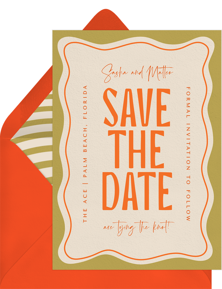 save the dates retro trip orange wedding Designs