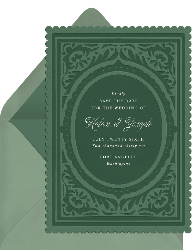 save the dates scalloped storybook green wedding Designs