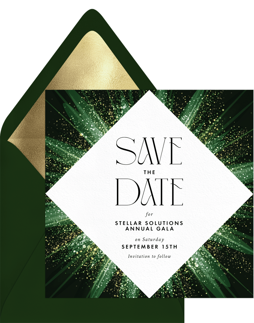 save the dates shimmering deco diamond green gala Designs