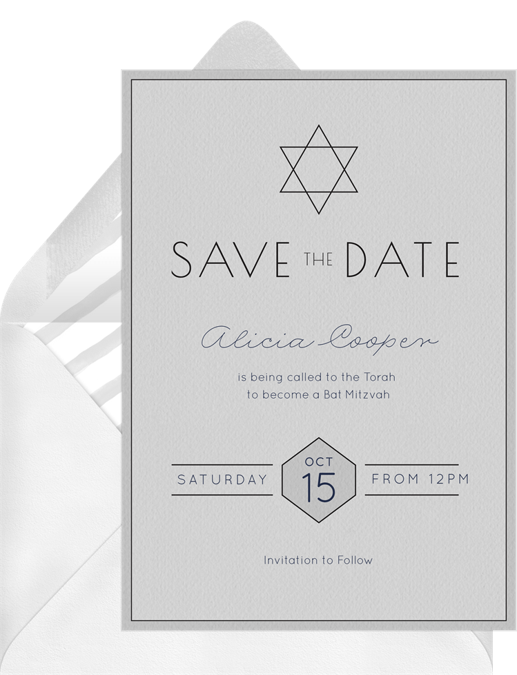 save the dates simple bat mitzvah grey bat mitzvah Designs