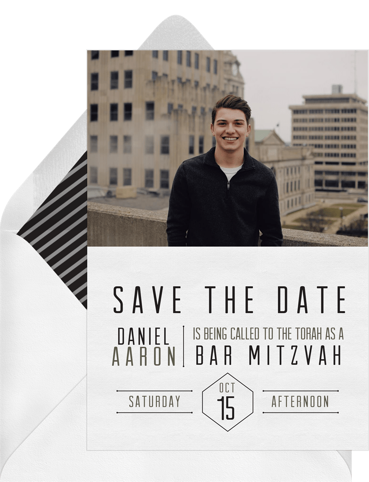 save the dates simple grid green bar mitzvah Designs