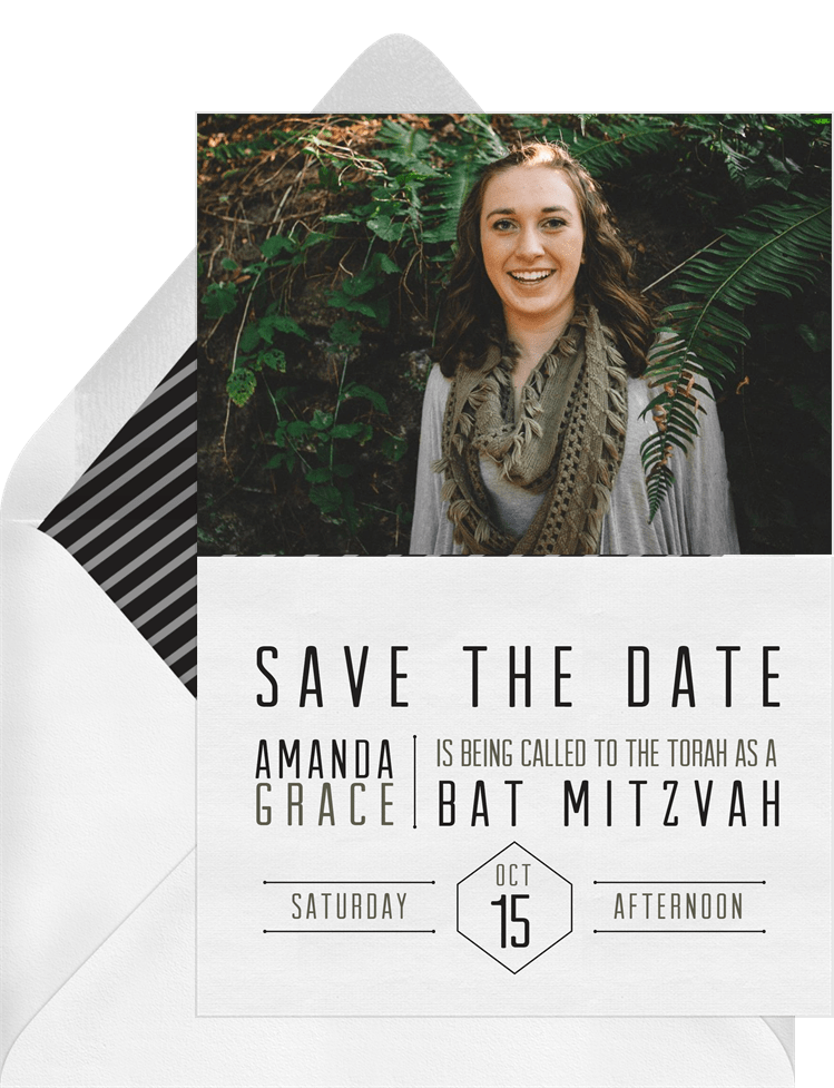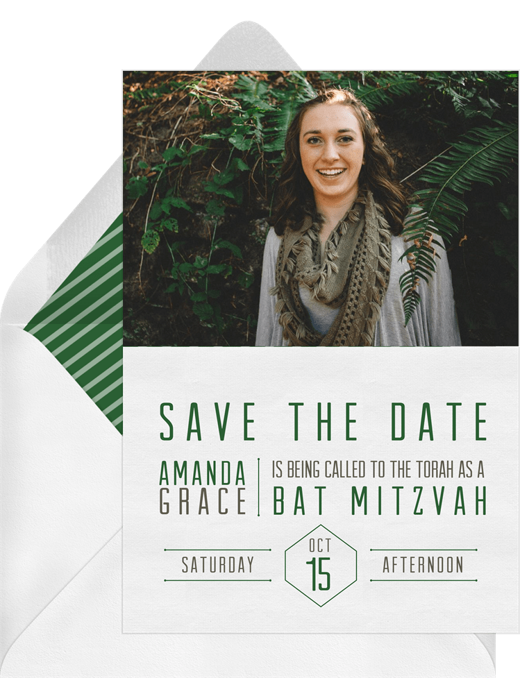 save the dates simple grid green bat mitzvah Designs