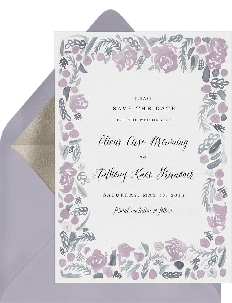 save the dates soft floral frame purple wedding Designs