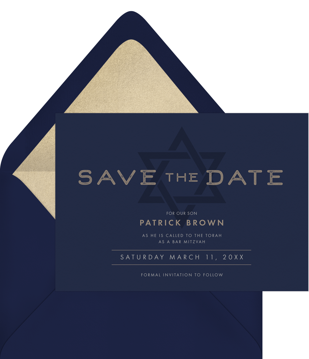 save the dates star feature black bar mitzvah Designs