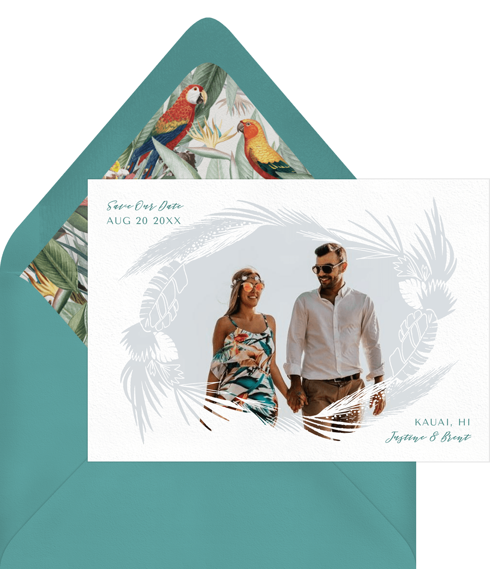 save the dates tropical frame white wedding Designs