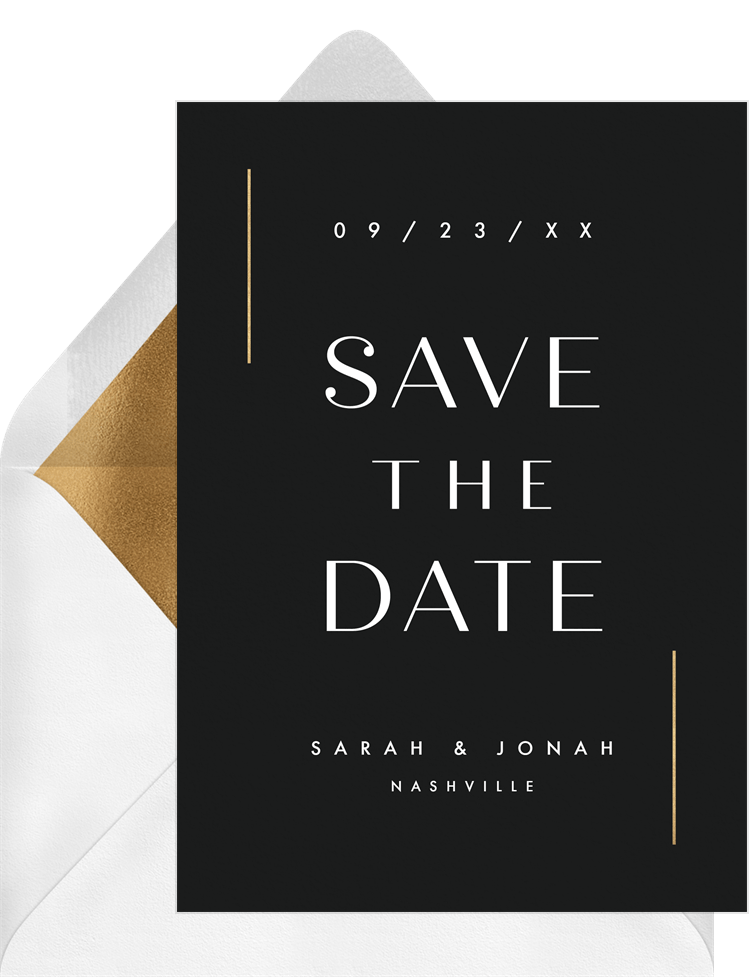 save the dates vertical gold accents black wedding Designs