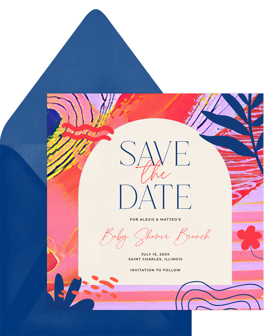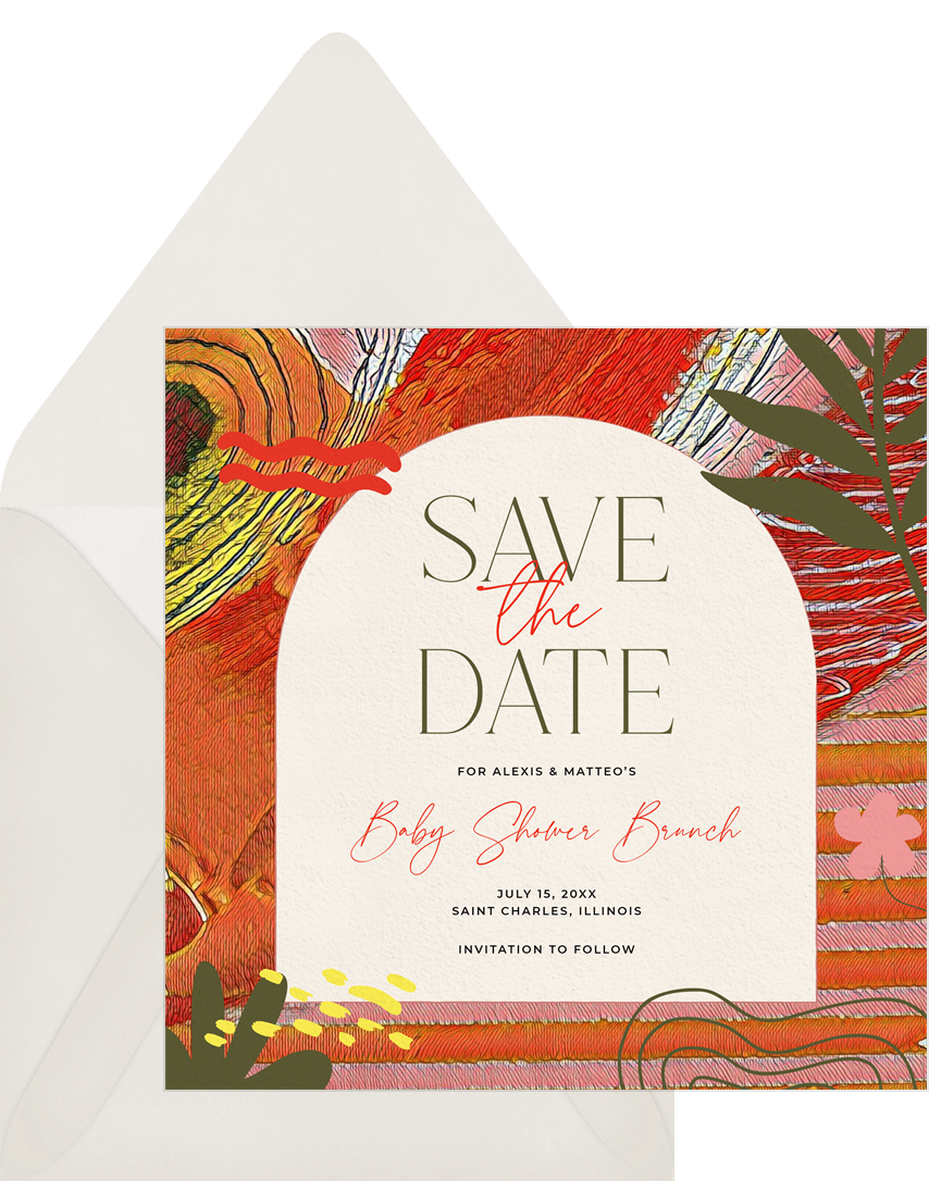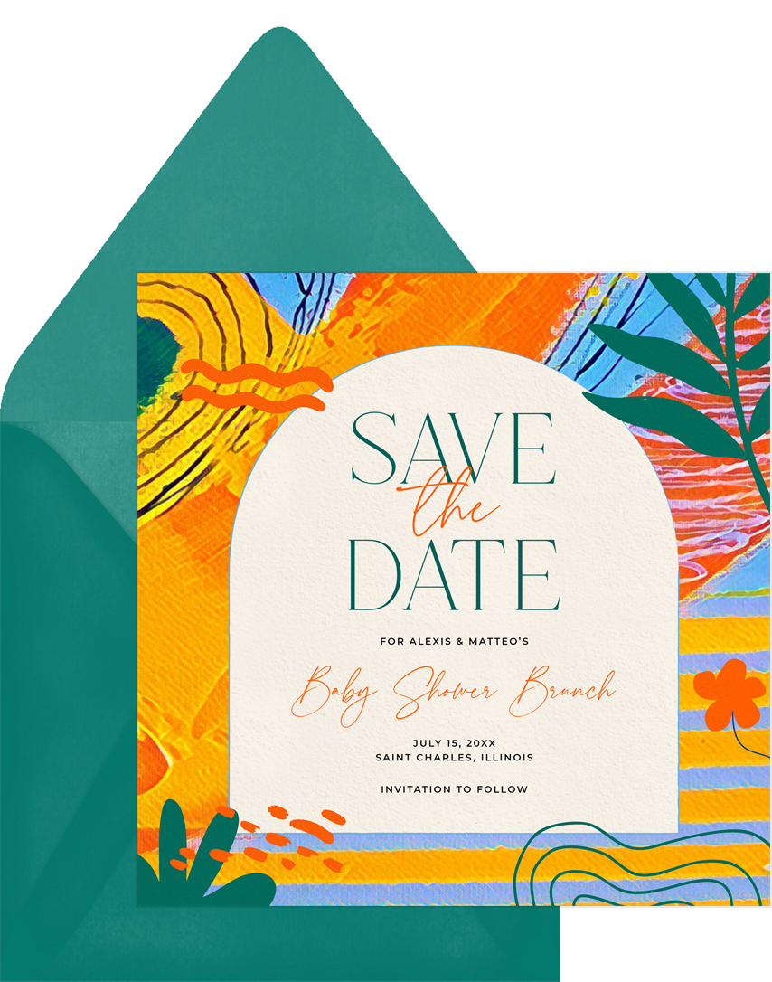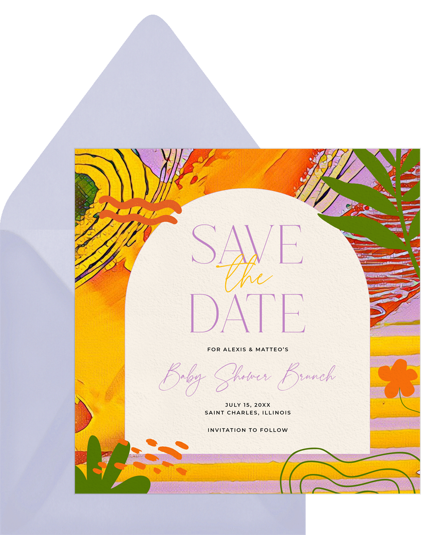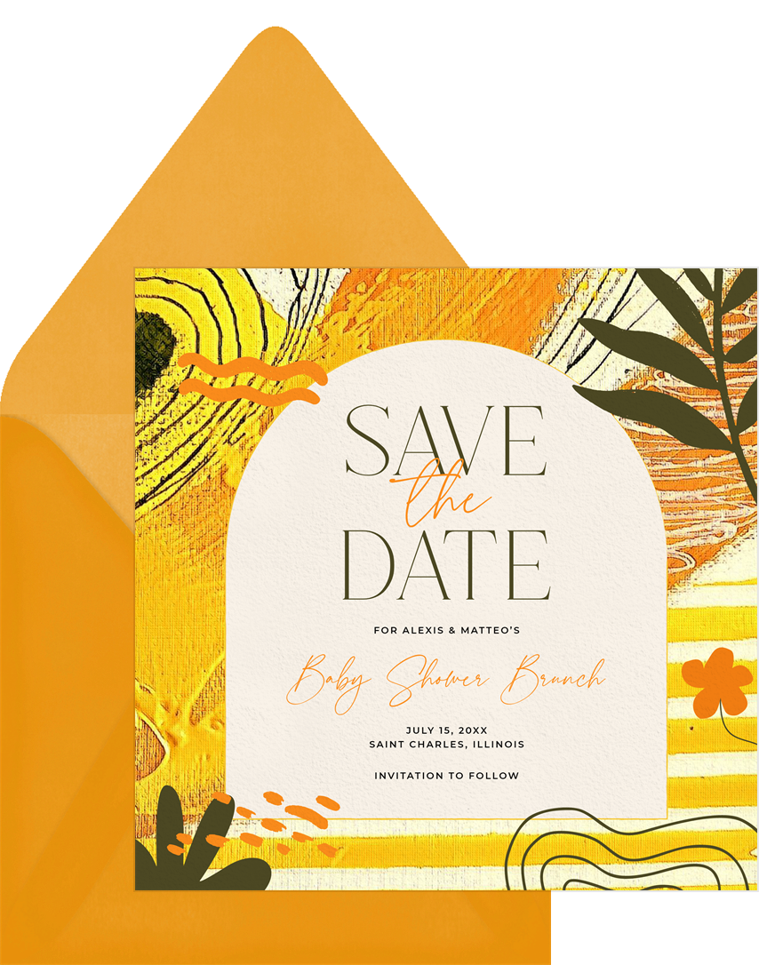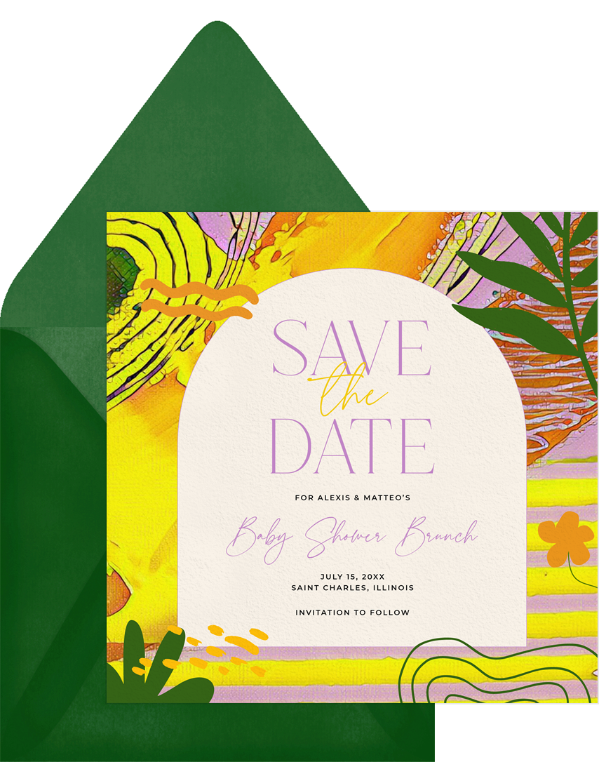 save the dates vibrant tropics yellow baby shower Designs