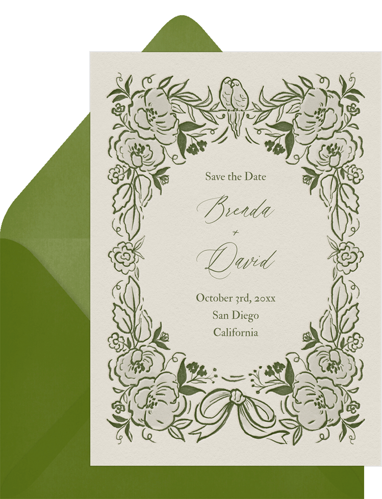 save the dates whimsy green wedding Designs