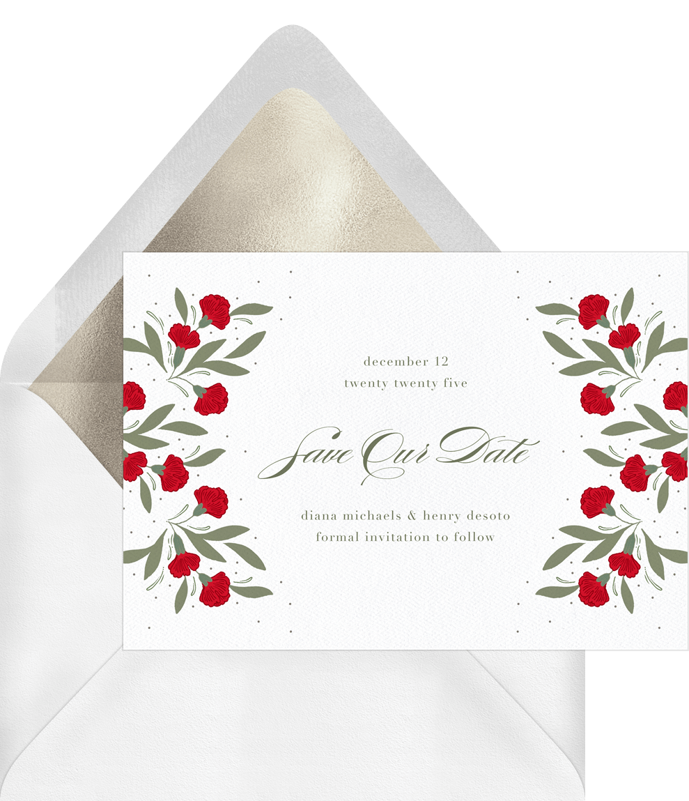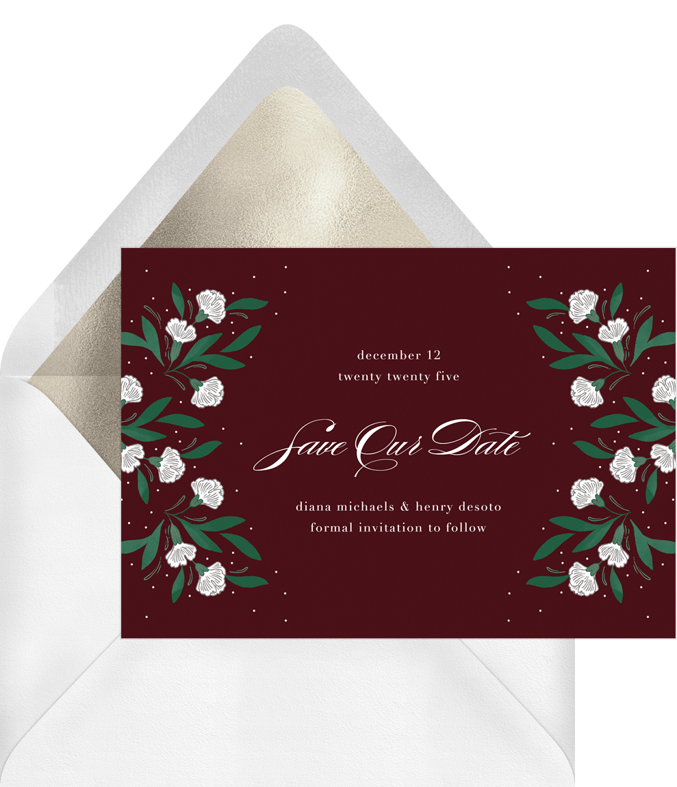save the dates winter roses white wedding Designs
