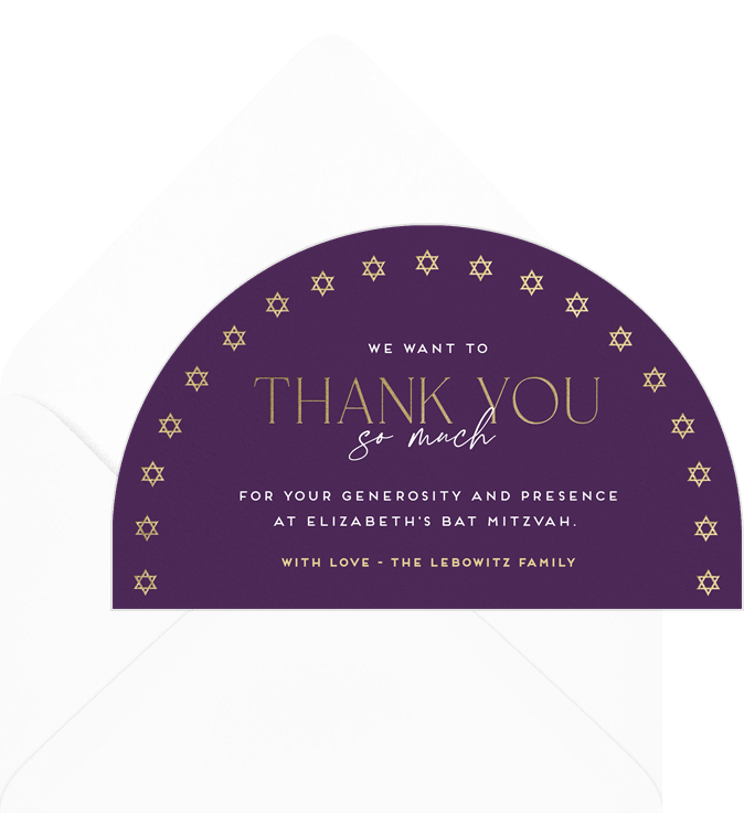 thank you notes arch mitzvah purple bat mitzvah Designs