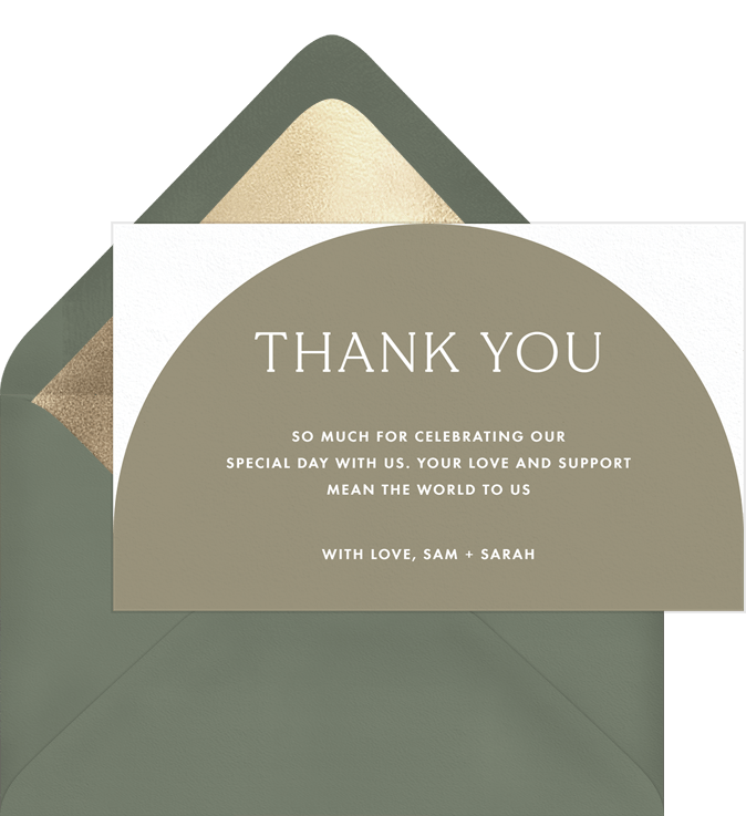thank you notes arched windows green wedding Designs