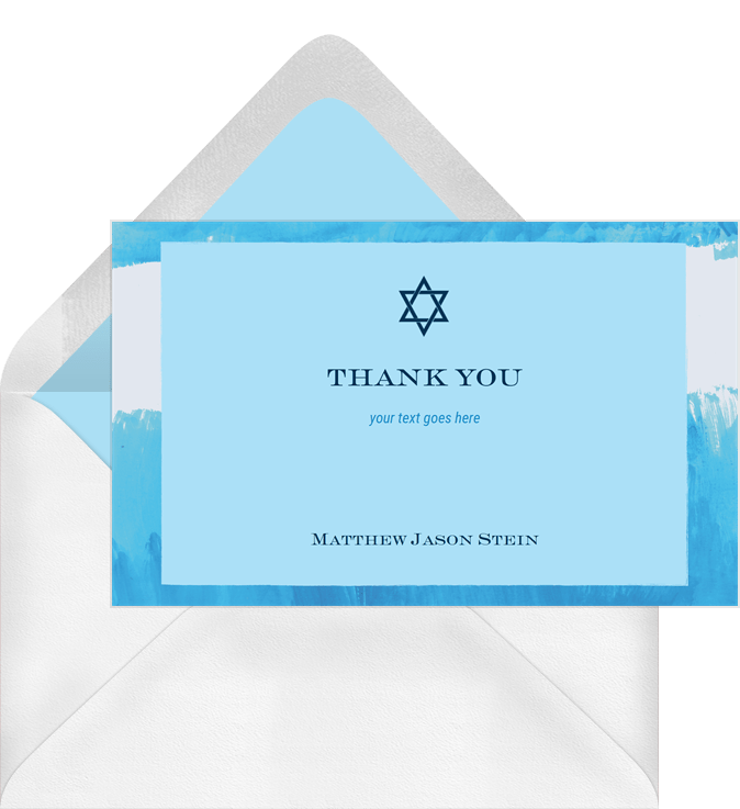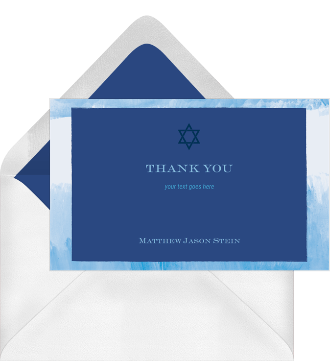 thank you notes blue brushstrokes blue bar mitzvah Designs