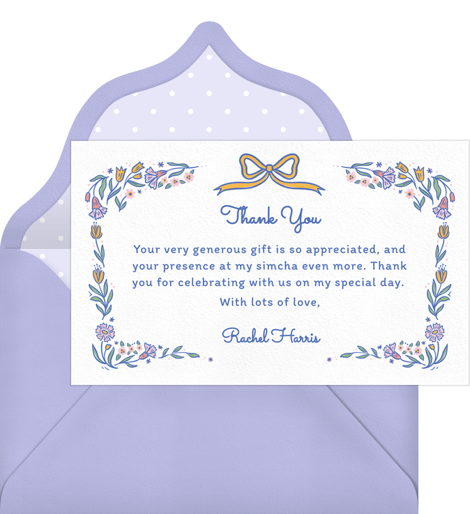thank you notes bows & blossoms pink bat mitzvah Designs