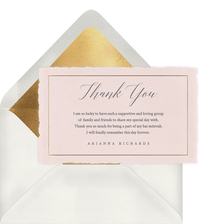 thank you notes classic deckled edge gold bat mitzvah Designs
