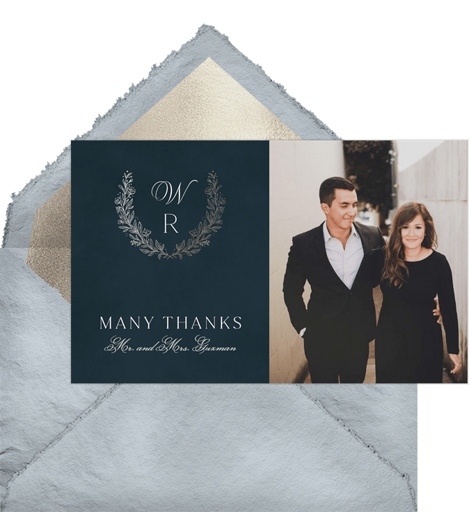 thank you notes classic gilded monogram blue rehearsal dinner Designs