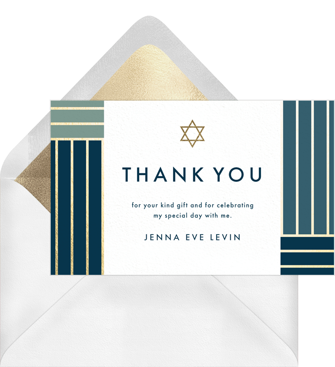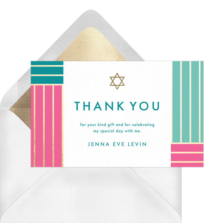 thank you notes color block stripe green bat mitzvah Designs