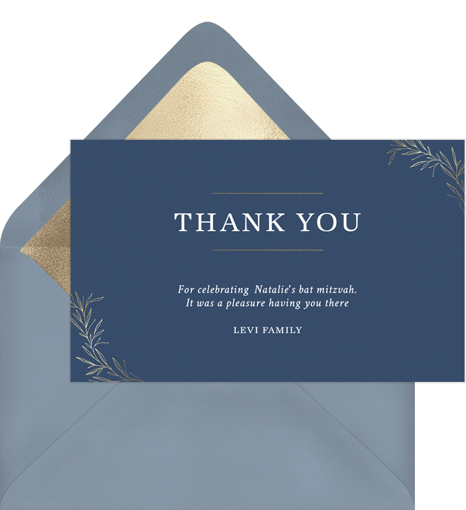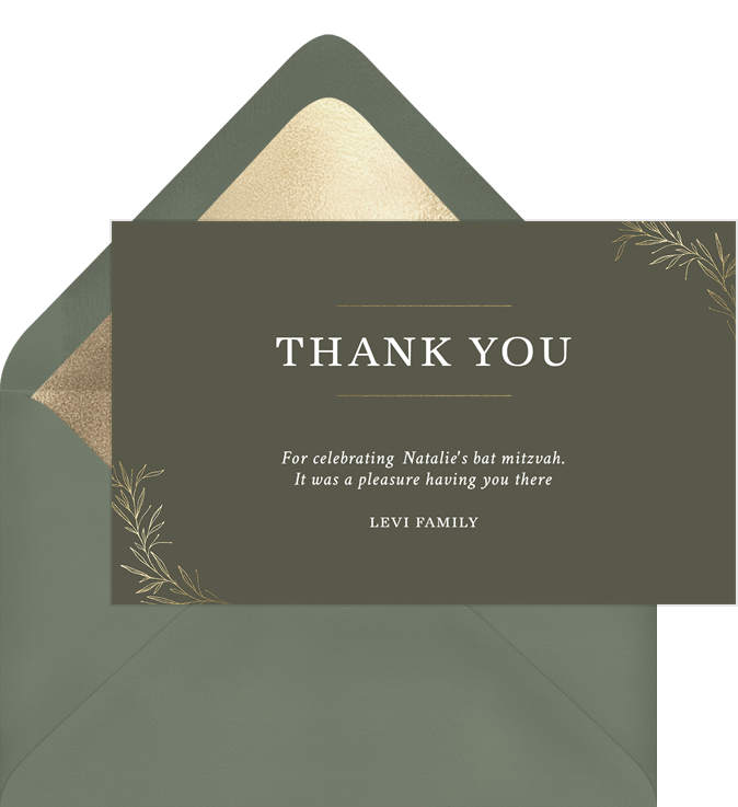 thank you notes delicate corner sprigs green bat mitzvah Designs